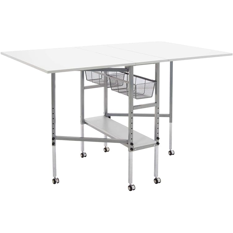 Amazon Com Arrow Sewing Cabinet 611 Gidget Ii Folding Sewing Cutting Quilting And Craft Table Portable With Wheels And Lift White Finish Arrow Companies Llc Arts Crafts Sewing